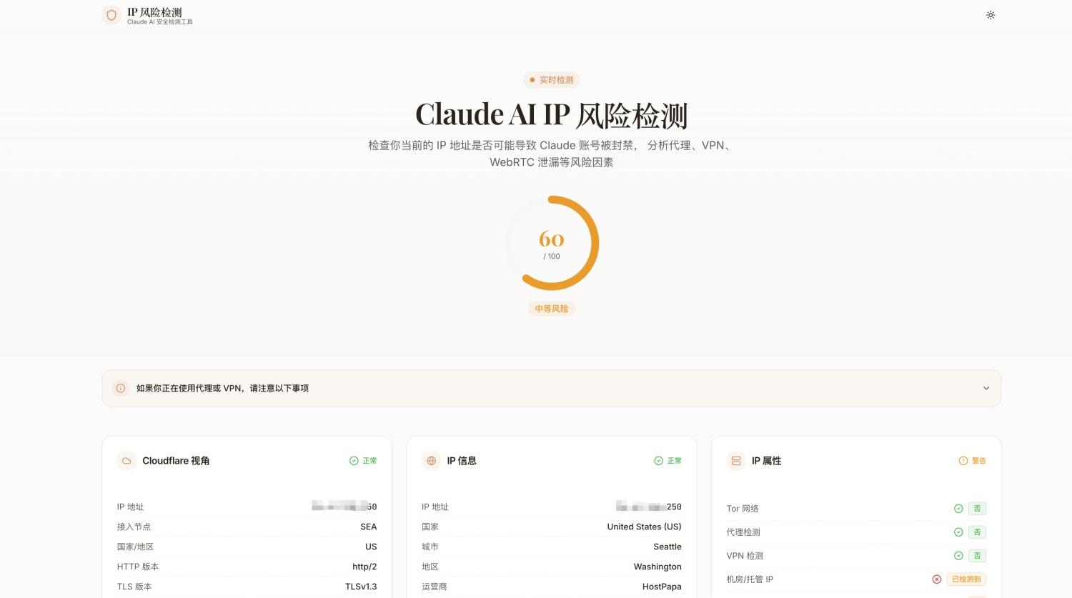 Claude IP风险检测工具解决了一个很具体的痛点:用Claude的时候,怎么知道自己的网络环境是不是安全的?